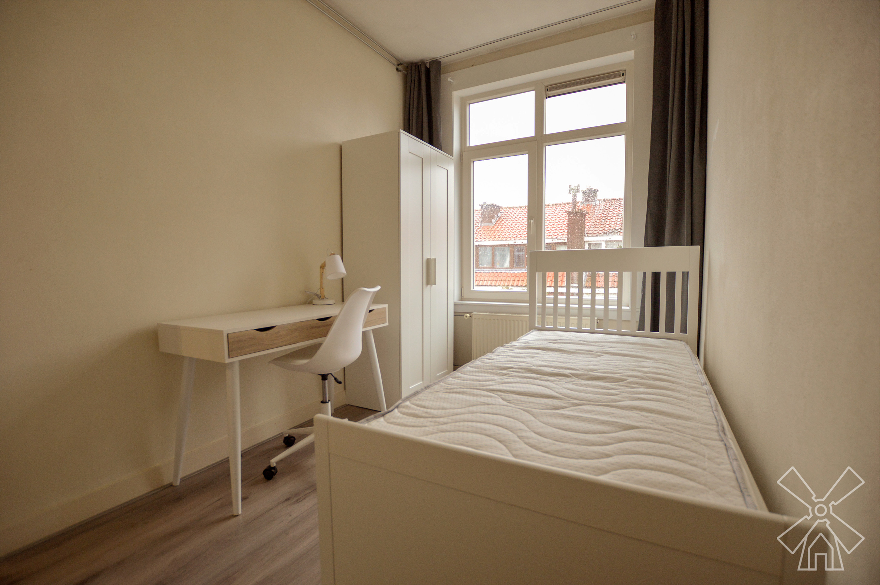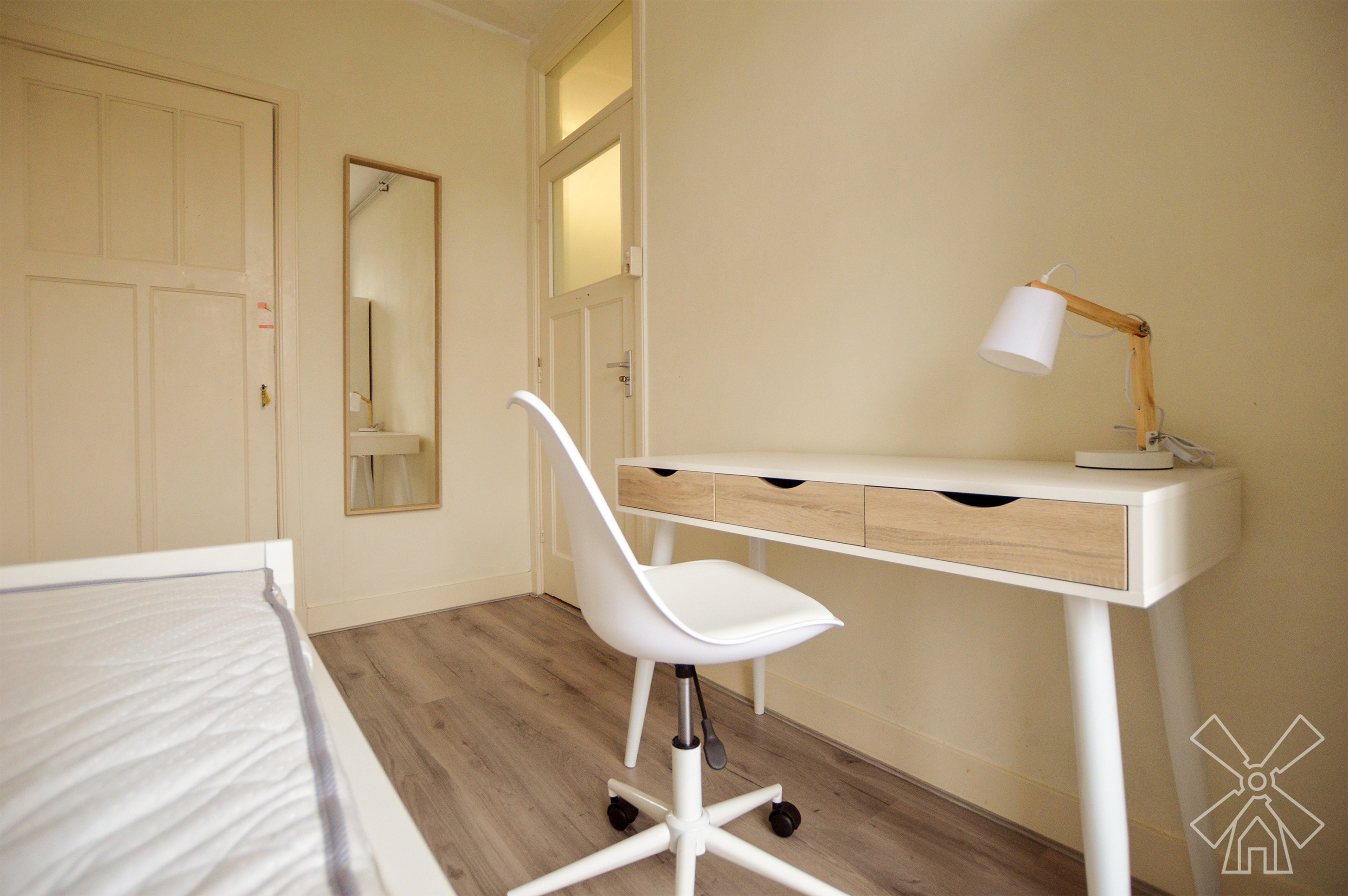 Situated in a first-floor apartment, this cosy bedroom comes fully furnished, offering all the essentials for comfortable living. You'll find a single bed with storage with a mattress, a convenient closet to store your belongings, and a desk with a desk chair and lamp for studying at home.